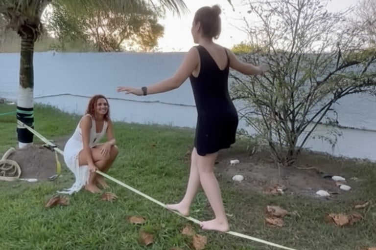 O slackline é uma prática de equilíbrio feita sobre uma fita tensionada entre dois pontos. Cada passo que você dá em cima da fita requer foco, consciência corporal e presença no momento. Além de fortalecer pernas, core e postura, o slackline desenvolve concentração, autoconfiança e coordenação.
